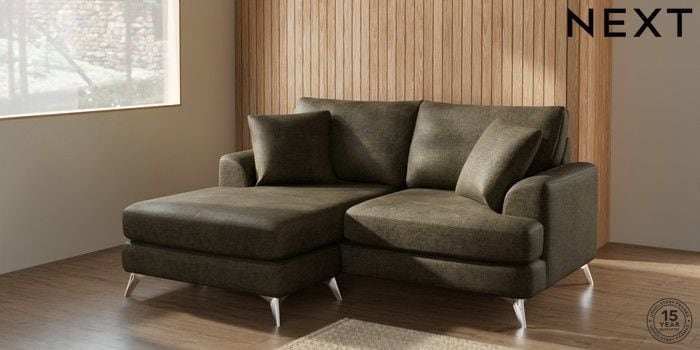 7.2.5 Buy Parker Compact Sofa Chaise - Universal Plush Chenille Moss Green High Metal - Chrome from the Next UK online shop Click here to use our accessible website