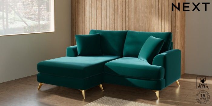 7.2.5 Buy Parker Compact Sofa Chaise - Universal Plush Velvet Easy Clean Juniper Green High Metal - Brass from the Next UK online shop Click here to use our accessible website
