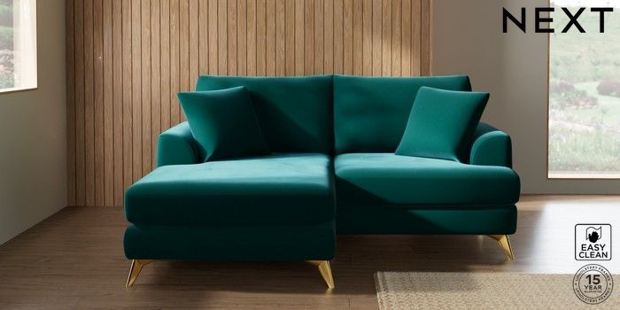 7.3.1 Buy Parker Compact Sofa Chaise - Universal Plush Velvet Easy Clean Juniper Green High Metal - Brass from the Next UK online shop Click here to use our accessible website
