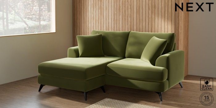 7.2.5 Buy Parker Compact Sofa Chaise - Universal Plush Velvet Easy Clean Mid Olive Green High Metal - Black from the Next UK online shop Click here to use our accessible website