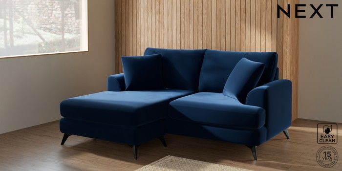 7.2.5 Buy Parker Compact Sofa Chaise - Universal Plush Velvet Easy Clean Navy Blue High Metal - Black from the Next UK online shop Click here to use our accessible website