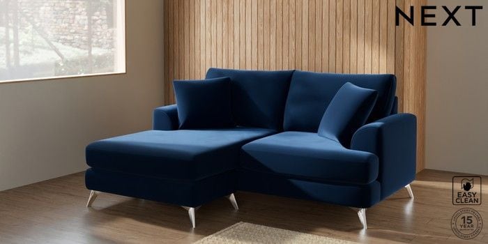 7.2.5 Buy Parker Compact Sofa Chaise - Universal Plush Velvet Easy Clean Navy Blue High Metal - Chrome from the Next UK online shop Click here to use our accessible website