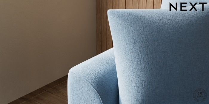 7.2.10 Buy Parker Compact Sofa Chaise - Universal Relaxed Linen Look Mid Blue High Metal - Chrome from the Next UK online shop Click here to use our accessible website