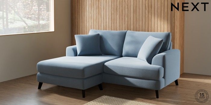7.2.5 Buy Parker Compact Sofa Chaise - Universal Relaxed Linen Look Mid Blue Low Retro Tapered - Dark from the Next UK online shop Click here to use our accessible website