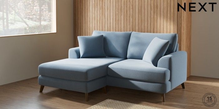 7.2.5 Buy Parker Compact Sofa Chaise - Universal Relaxed Linen Look Mid Blue Low Retro Tapered - Mid from the Next UK online shop Click here to use our accessible website