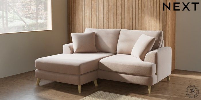 7.2.5 Buy Parker Compact Sofa Chaise - Universal Relaxed Linen Look Mid Natural Low Retro Tapered - Light from the Next UK online shop Click here to use our accessible website