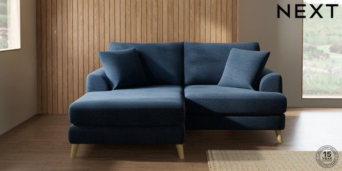 7.0.3 Buy Parker Compact Sofa Chaise - Universal Ripple Chenille Dark Blue Low Retro Tapered - Light from the Next UK online shop Click here to use our accessible website