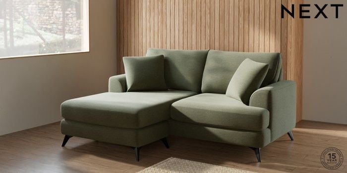 7.2.5 Buy Parker Compact Sofa Chaise - Universal Ripple Chenille Mid Moss Green High Metal - Black from the Next UK online shop Click here to use our accessible website