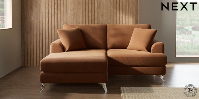 7.2.10 Buy Parker Compact Sofa Chaise - Universal Ripple Chenille Mid Rust Brown High Metal - Chrome from the Next UK online shop Click here to use our accessible website