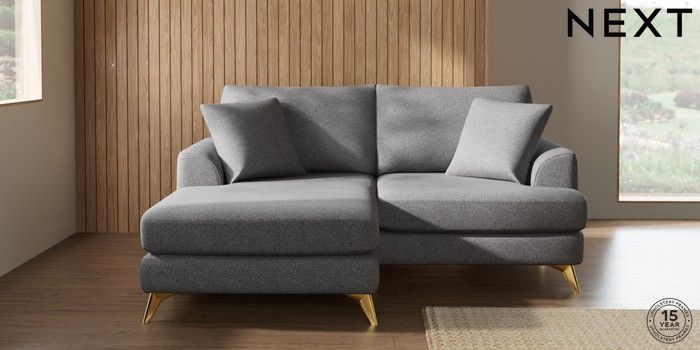7.2.10 Buy Parker Compact Sofa Chaise - Universal Studio Chenille Mid Grey High Metal - Brass from the Next UK online shop Click here to use our accessible website