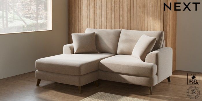 7.2.5 Buy Parker Compact Sofa Chaise - Universal Tweedy Blend Easy Clean Light Dove Natural Low Retro Tapered - Mid from the Next UK online shop Click here to use our accessible website