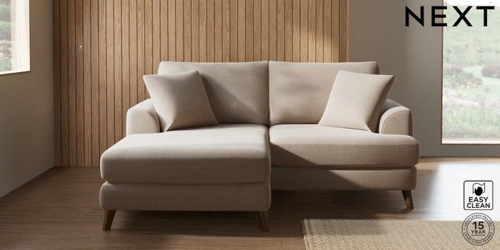 7.3.1 Buy Parker Compact Sofa Chaise - Universal Tweedy Blend Easy Clean Light Dove Natural Low Retro Tapered - Mid from the Next UK online shop Click here to use our accessible website