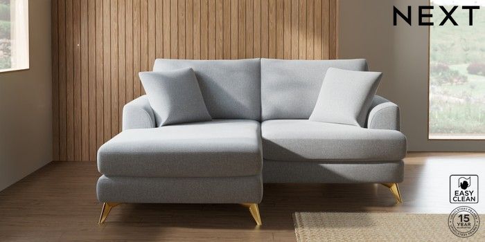 7.2.10 Buy Parker Compact Sofa Chaise - Universal Tweedy Blend Easy Clean Light Silver Grey High Metal - Brass from the Next UK online shop Click here to use our accessible website