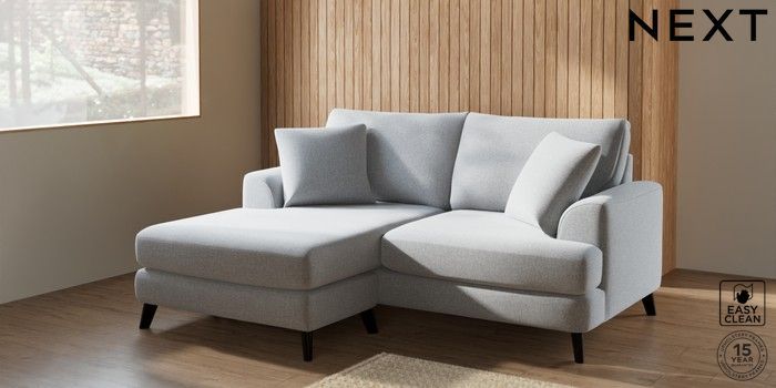 7.2.5 Buy Parker Compact Sofa Chaise - Universal Tweedy Blend Easy Clean Light Silver Grey Low Retro Tapered - Dark from the Next UK online shop Click here to use our accessible website