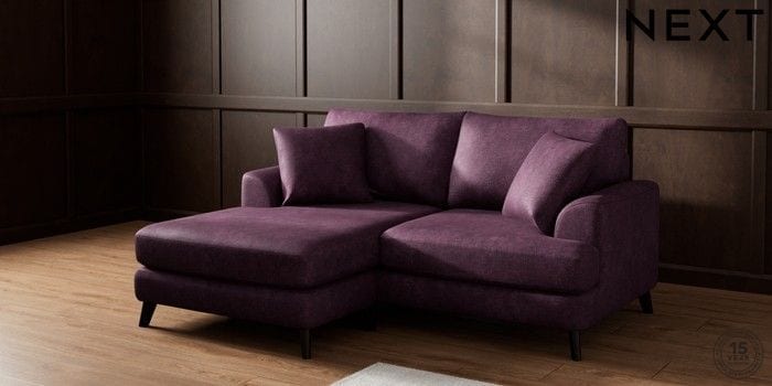 7.2.4 Buy Parker Compact Sofa Chaise - Universal Plush Chenille Dark Plum Purple Low Retro Tapered - Dark from the Next UK online shop Click here to use our accessible website