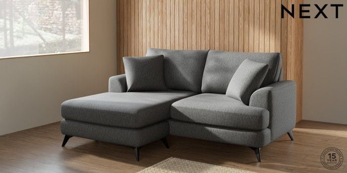 7.2.5 Buy Parker Compact Sofa Chaise - Universal Tweedy Chenille Dark Grey High Metal - Black from the Next UK online shop Click here to use our accessible website
