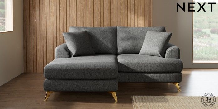 7.2.10 Buy Parker Compact Sofa Chaise - Universal Tweedy Chenille Dark Grey High Metal - Brass from the Next UK online shop Click here to use our accessible website