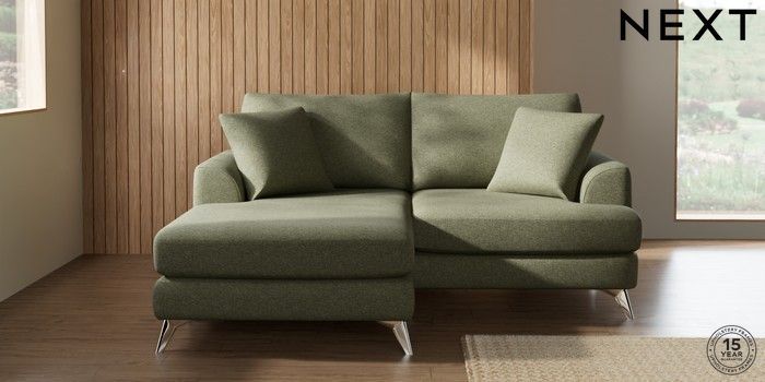 7.2.10 Buy Parker Compact Sofa Chaise - Universal Tweedy Chenille Mid Moss Green High Metal - Chrome from the Next UK online shop Click here to use our accessible website