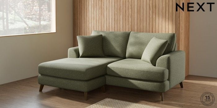 7.2.5 Buy Parker Compact Sofa Chaise - Universal Tweedy Chenille Mid Moss Green Low Retro Tapered - Mid from the Next UK online shop Click here to use our accessible website