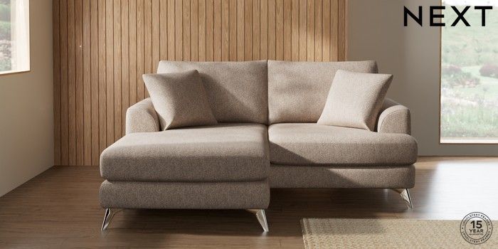 7.2.10 Buy Parker Compact Sofa Chaise - Universal Tweedy Chenille Mid Natural High Metal - Chrome from the Next UK online shop Click here to use our accessible website