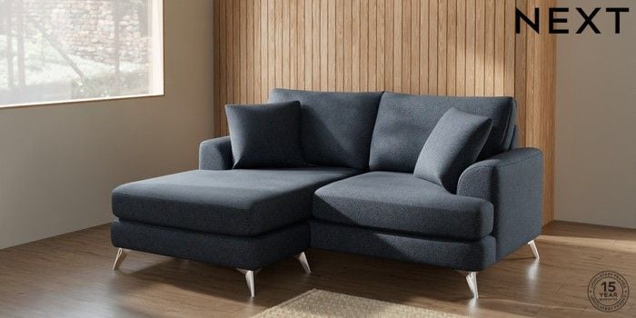 7.2.5 Buy Parker Compact Sofa Chaise - Universal Tweedy Chenille Navy Blue High Metal - Chrome from the Next UK online shop Click here to use our accessible website