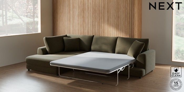 7.2.10 Buy Parker Corner Chaise Bed - Left Hand Fine Chenille Easy Clean Dark Moss Green Glide from the Next UK online shop Click here to use our accessible website