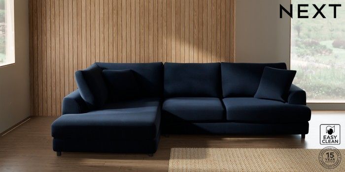 7.2.10 Buy Parker Corner Chaise Bed - Left Hand Fine Chenille Easy Clean Dark Navy Blue Glide from the Next UK online shop Click here to use our accessible website