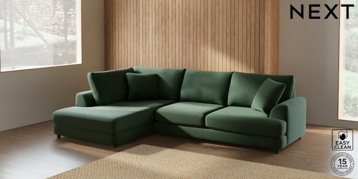 7.2.5 Buy Parker Corner Chaise Bed - Left Hand Fine Chenille Easy Clean Mid Khaki Green Glide from the Next UK online shop Click here to use our accessible website