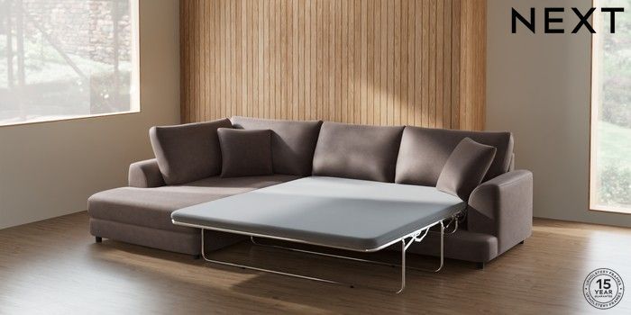 7.2.10 Buy Parker Corner Chaise Bed - Left Hand Luxe Chenille Mink Brown Glide from the Next UK online shop Click here to use our accessible website