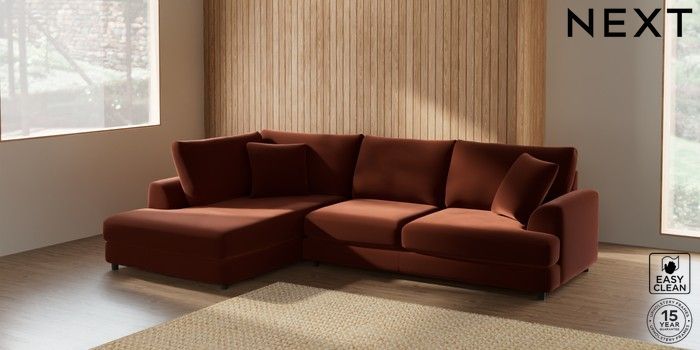 7.2.5 Buy Parker Corner Chaise Bed - Left Hand Plush Velvet Easy Clean Ginger Orange Glide from the Next UK online shop Click here to use our accessible website