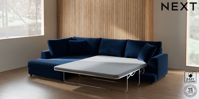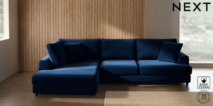 7.2.10 Buy Parker Corner Chaise Bed - Left Hand Plush Velvet Easy Clean Navy Blue Glide from the Next UK online shop Click here to use our accessible website
