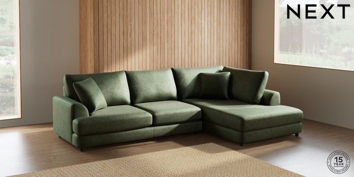 7.2.5 Buy Parker Corner Chaise Bed - Right Hand Boucle Chenille Dark Moss Green Glide from the Next UK online shop Click here to use our accessible website