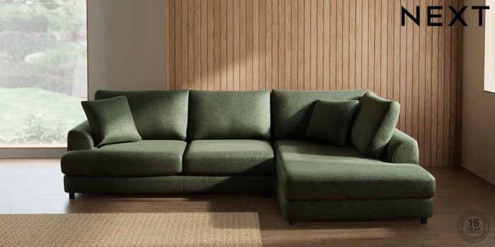 7.2.10 Buy Parker Corner Chaise Bed - Right Hand Boucle Chenille Dark Moss Green Glide from the Next UK online shop Click here to use our accessible website