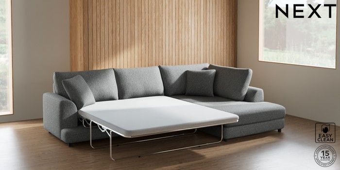 7.2.10 Buy Parker Corner Chaise Bed - Right Hand Chunky Boucle Easy Clean Mid Grey Glide from the Next UK online shop Click here to use our accessible website