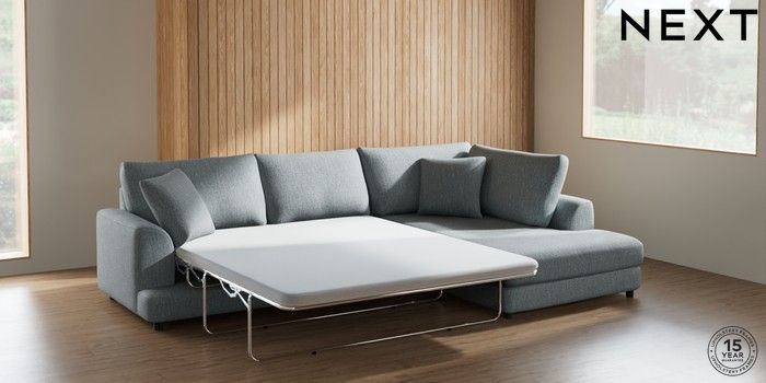 7.2.10 Buy Parker Corner Chaise Bed - Right Hand Chunky Weave Mid Blue Glide from the Next UK online shop Click here to use our accessible website