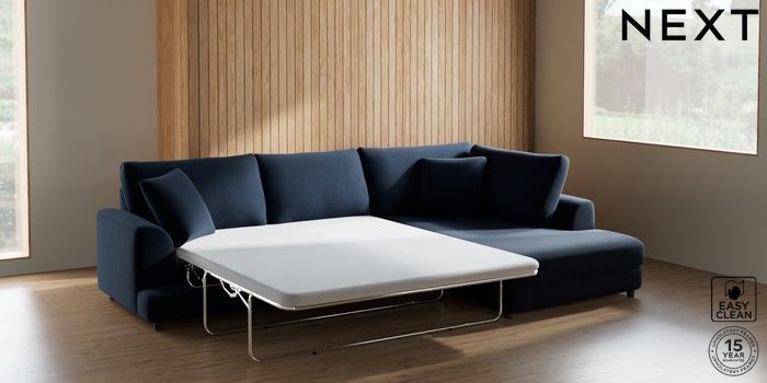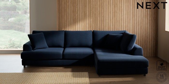 7.2.10 Buy Parker Corner Chaise Bed - Right Hand Fine Chenille Easy Clean Dark Navy Blue Glide from the Next UK online shop Click here to use our accessible website