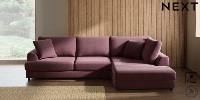 7.3.1 Buy Parker Corner Chaise Bed - Right Hand Fine Chenille Easy Clean Mid Mulberry Purple Glide from the Next UK online shop Click here to use our accessible website