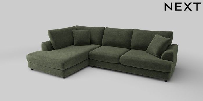 6.12.1 Buy Parker Corner Chaise Bed - Right Hand Luxe Chenille Mid Green Glide from the Next UK online shop Click here to use our accessible website