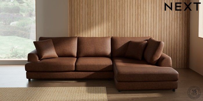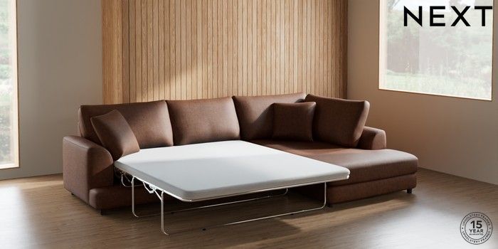 7.3.1 Buy Parker Corner Chaise Bed - Right Hand Monza Faux Leather Easy Clean Chestnut Brown Glide from the Next UK online shop Click here to use our accessible website