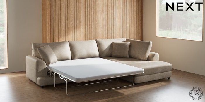 7.0.3 Buy Parker Corner Chaise Bed - Right Hand Plush Chenille Light Natural Glide from the Next UK online shop Click here to use our accessible website