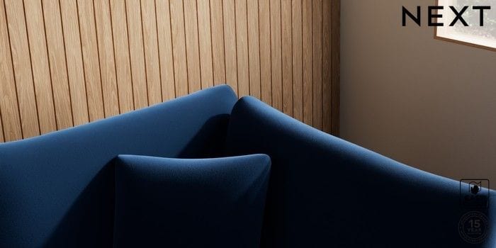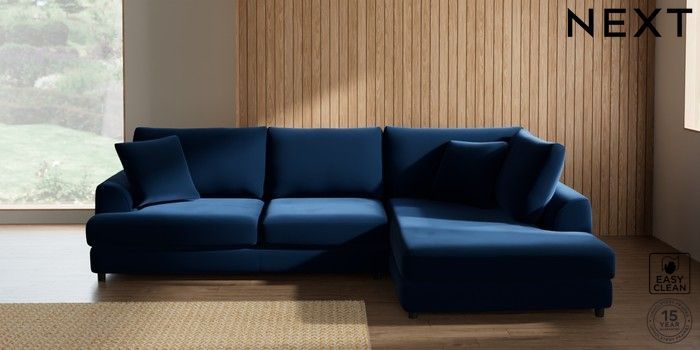 7.2.10 Buy Parker Corner Chaise Bed - Right Hand Plush Velvet Easy Clean Navy Blue Glide from the Next UK online shop Click here to use our accessible website