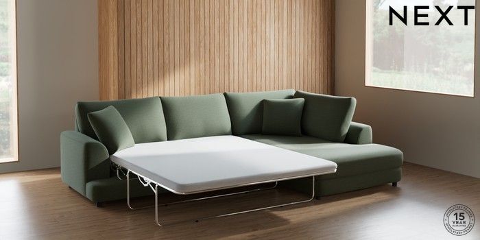 7.2.10 Buy Parker Corner Chaise Bed - Right Hand Relaxed Linen Look Dark Green Glide from the Next UK online shop Click here to use our accessible website