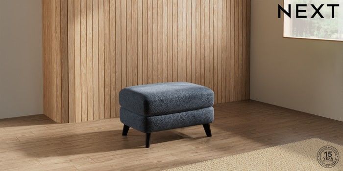 7.2.10 Buy Parker Footstool Boucle Chenille Dark Slate Blue Low Retro Tapered - Dark from the Next UK online shop Click here to use our accessible website