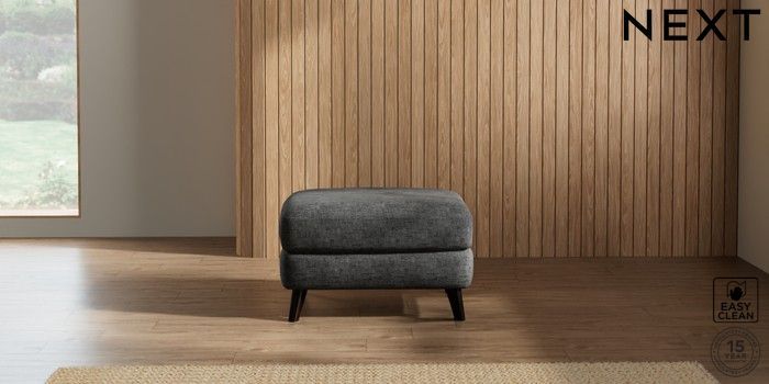 7.2.5 Buy Parker Footstool Boucle Weave Easy Clean Charcoal Grey Low Retro Tapered - Dark from the Next UK online shop Click here to use our accessible website