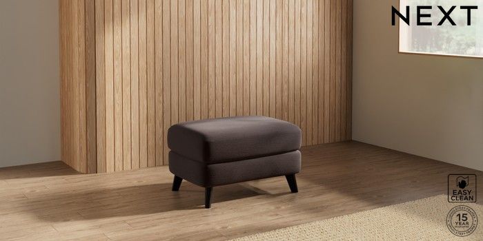 7.2.6 Buy Parker Footstool Fine Chenille Easy Clean Chocolate Brown Low Retro Tapered - Dark from the Next UK online shop Click here to use our accessible website