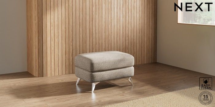 7.2.10 Buy Parker Footstool Chunky Boucle Easy Clean Mid Natural High Metal - Chrome from the Next UK online shop Click here to use our accessible website