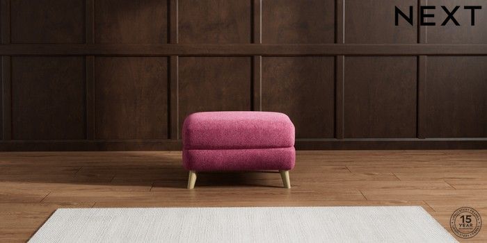 7.2.5 Buy Parker Footstool Cotswold Chenille Dark Raspberry Pink Low Retro Tapered - Light from the Next UK online shop Click here to use our accessible website