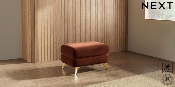 7.3.1 Buy Parker Footstool Plush Velvet Easy Clean Ginger Orange High Metal - Brass from the Next UK online shop Click here to use our accessible website