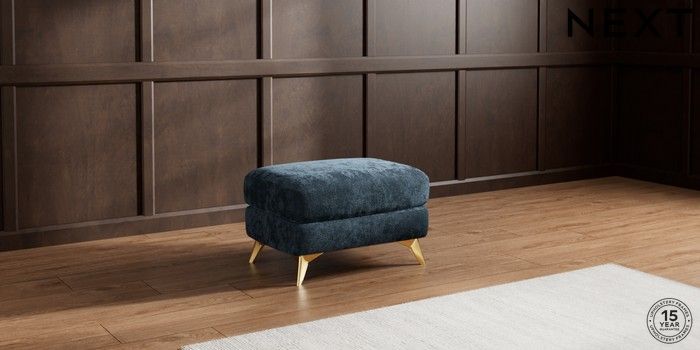 7.2.10 Buy Parker Footstool Distressed Velour Midnight Blue High Metal - Brass from the Next UK online shop Click here to use our accessible website