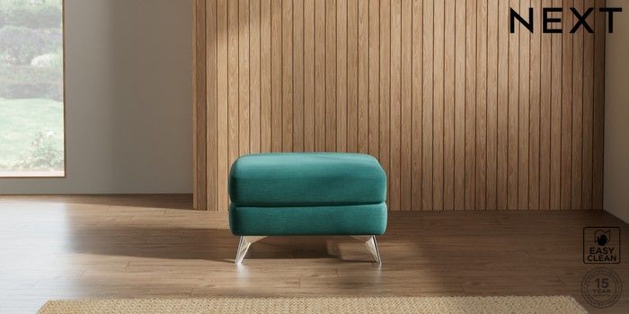 7.2.5 Buy Parker Footstool Fine Chenille Easy Clean Dark Juniper Green High Metal - Chrome from the Next UK online shop Click here to use our accessible website